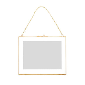 This photoframe is perfect for displaying pictures and posters. The frame itself is made of brass, which gives it a classic vintage appearance. The frame comes with a chain that is both decorative and makes it easier to hang. This product is handmade and may therefore variate.