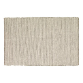 This rug is woven from grey and white cotton. The roughly woven texture adds a comfortable and tactile feeling to the rug. The texture and colour gives the rug a modern Scandinavian appearance. Place the rug in the living or dining room for a more cozy atmosphere. This product is handmade and may therefore variate.