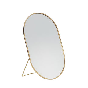 This table mirror is an elegant and modern addition to your home. Place the mirror in your bedroom, bathroom, entree and more. The brass rim gives this table mirror a chic look. The way the table mirror is made makes it possible to place this mirror freely on many different types of furniture.